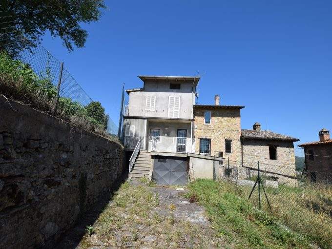 Sulla sommità di una collina situata tra Gubbio e Scheggia a quota 810 m. slm, si trova questa bella proprietà composta da una villa di nuova costruzione, una rimessa attrezzi e terreno agricolo completa di recinzione.