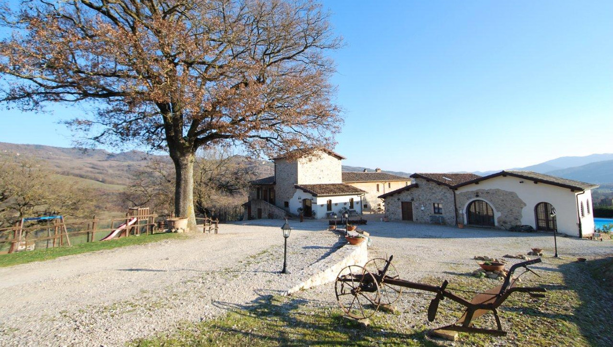 On the hills of Umbria not far from Città di Castello, we find this 130.000 sqm estate made up of 2800 olive groves, meadows pastures and an excellent “Agriturismo”. The property is well-established both for the agricultural and the accommodation business. In a very panoramic position with this “Agriturismo” complex composed of a main “Casa Padronale” dating back to 1855; everything completely restored to the old standard and includes 9 guest apartments full furnished and 3 bedrooms for customers with disabilities and a restaurant for tasting delicious food and farm delicacies such as oil and local wine.