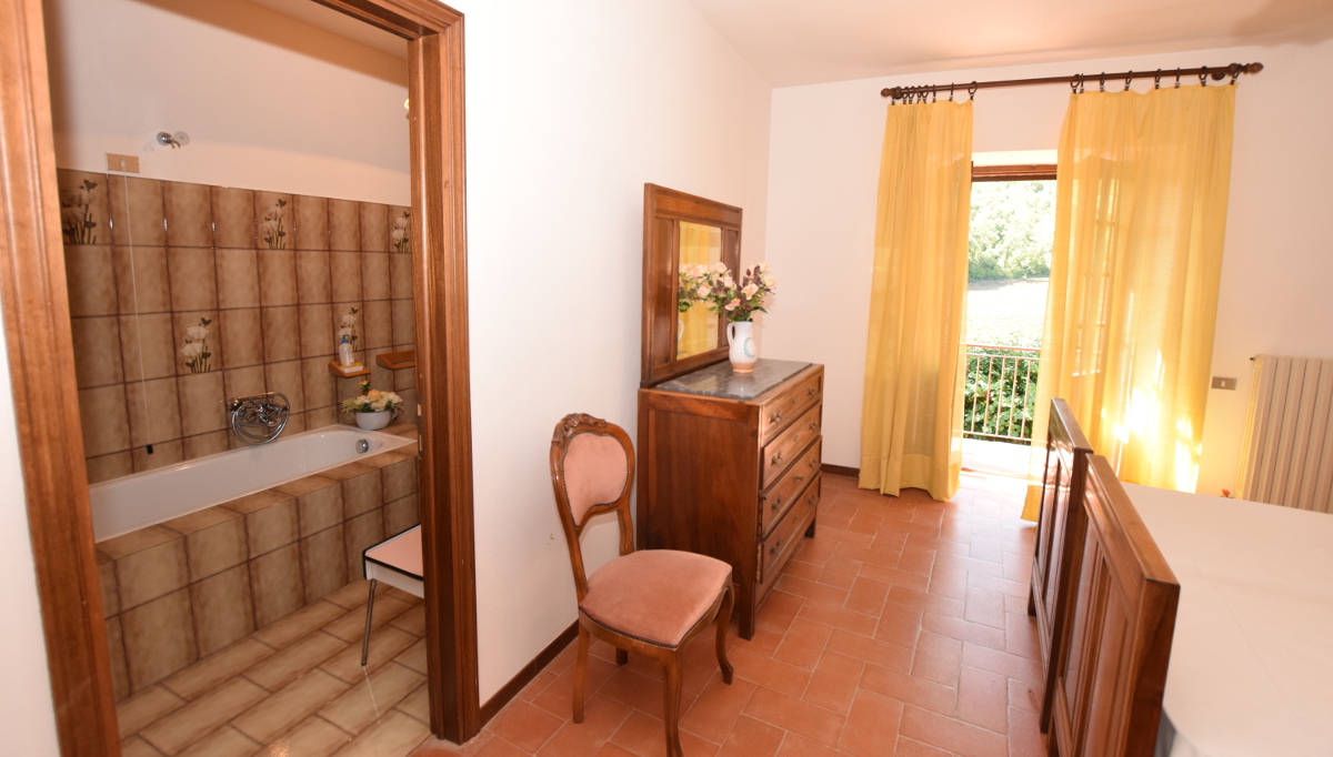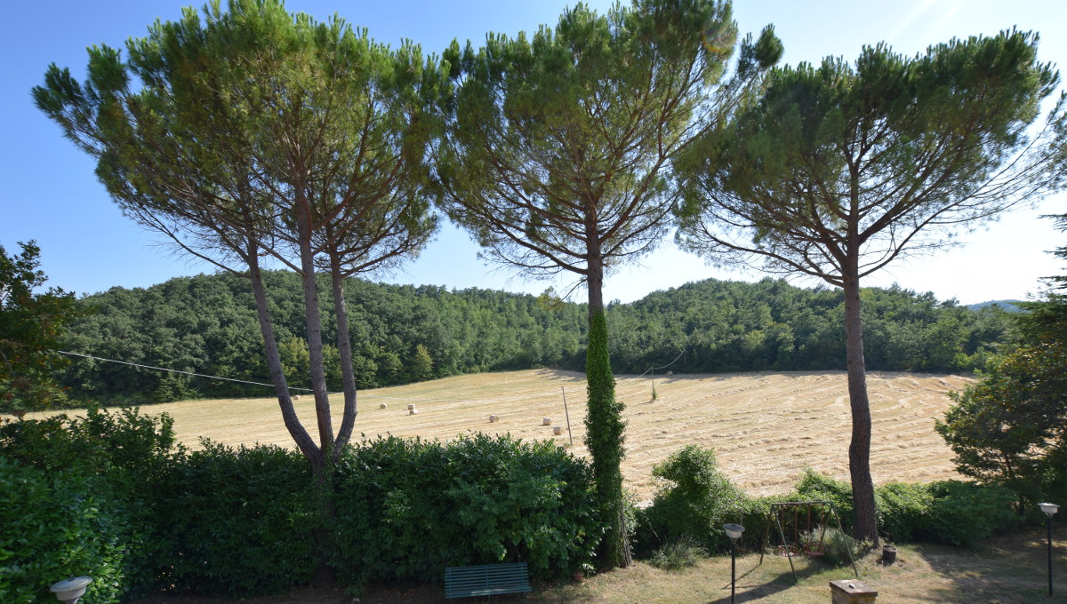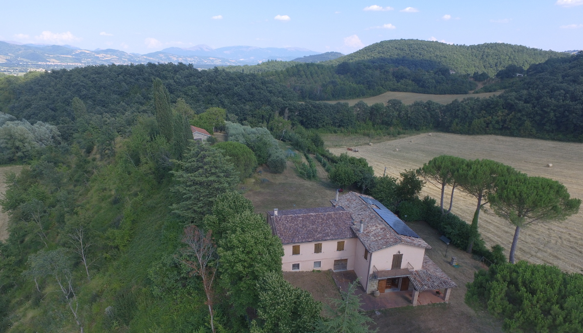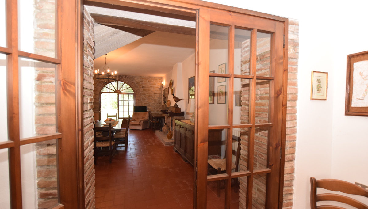 In Umbria, in una zona tranquilla questo casolare ristrutturato con un ampio terreno agricolo, in parte ottimo seminativo ed in parte bosco ceduo.