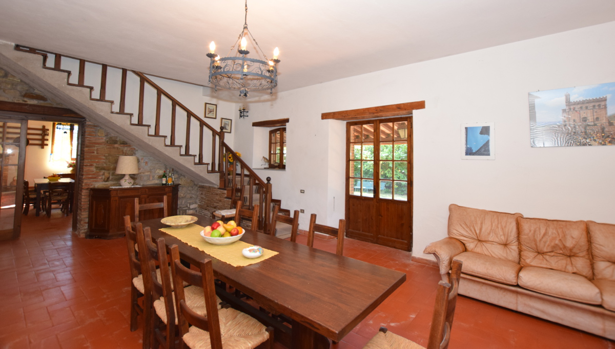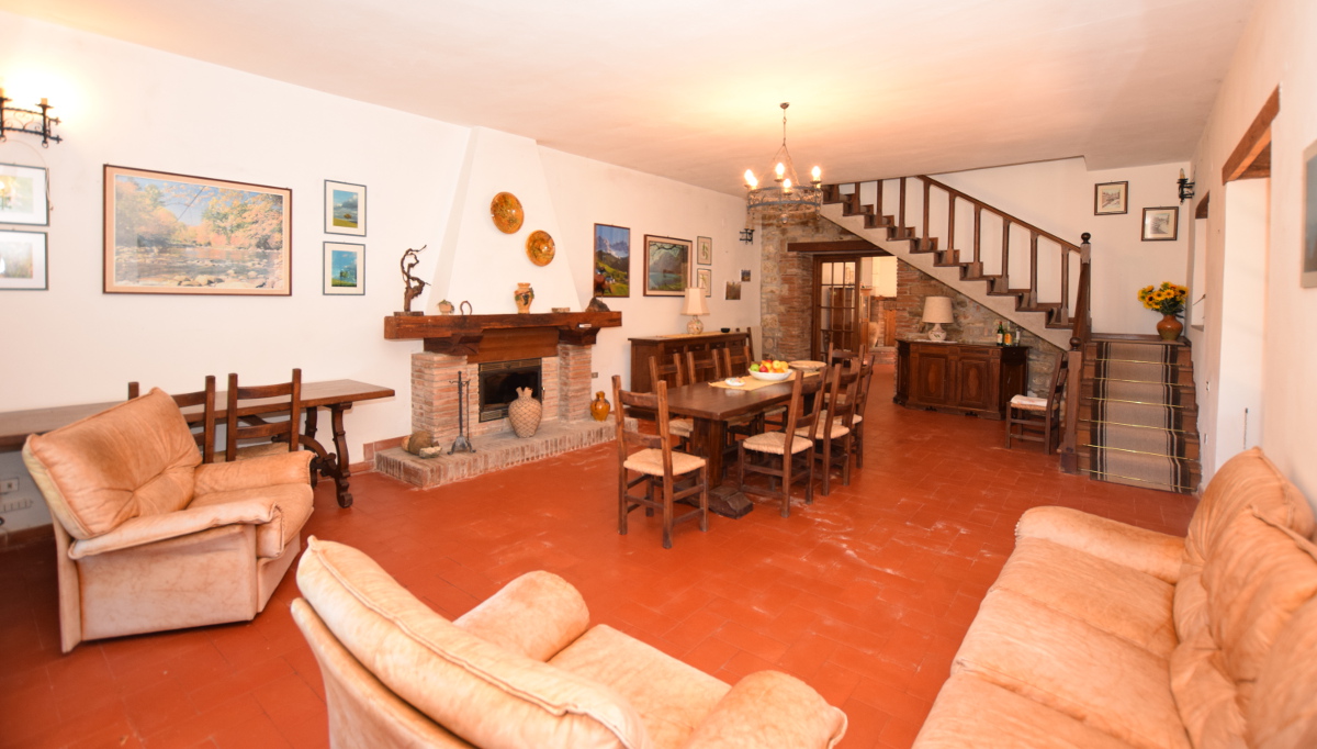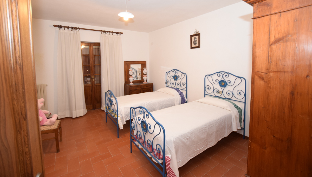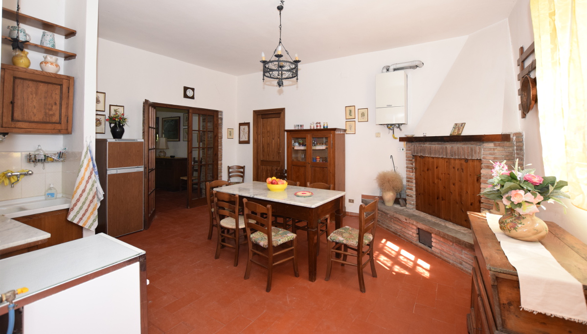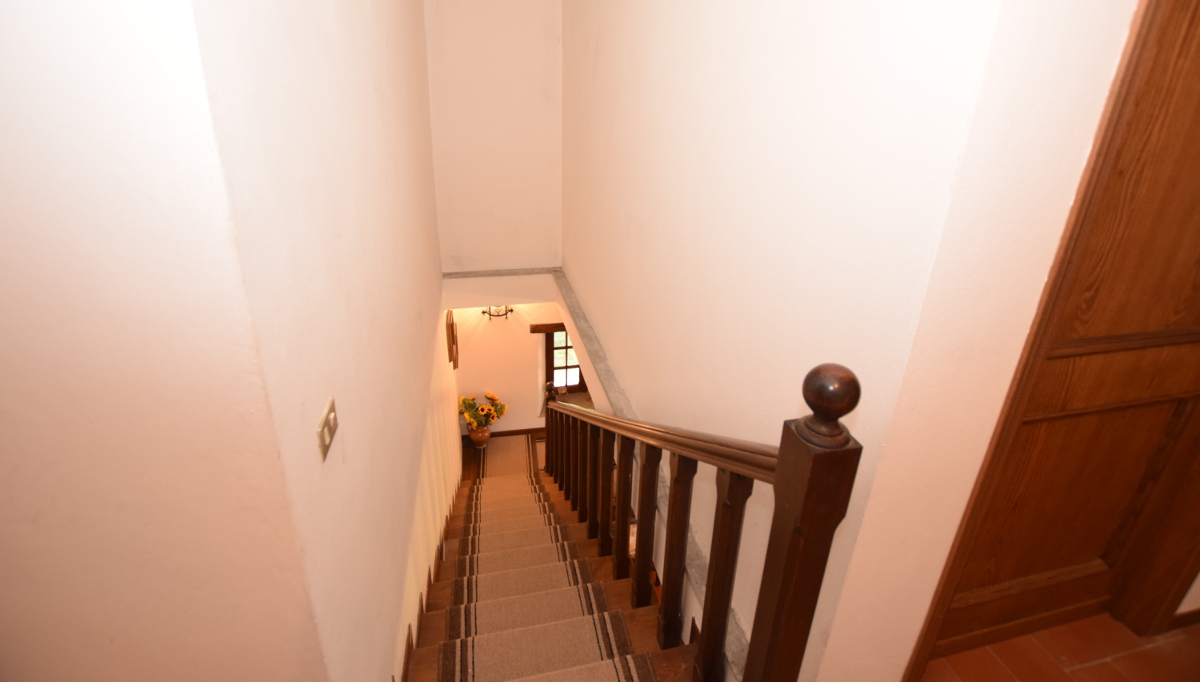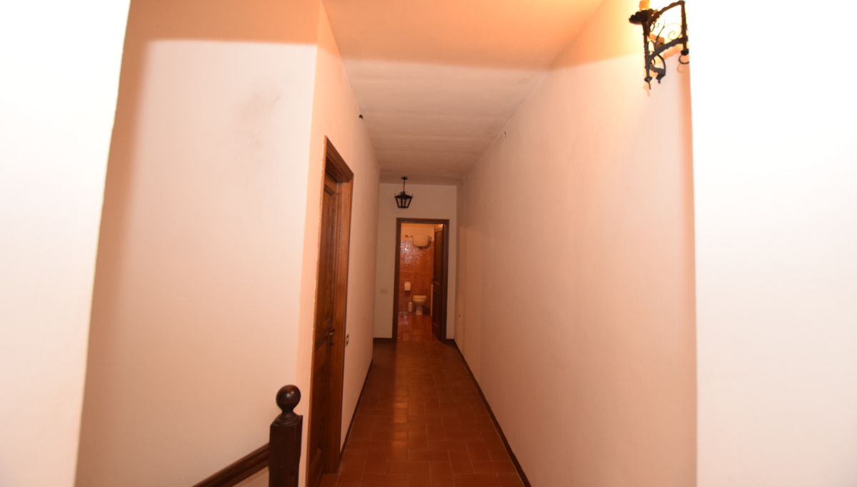 Il fabbricato principale è molto spazioso, al piano terra, con ingresso dal portico, grande salone con cucina garage e cantina, mediante una scala a vista, dal salone a piano terra, si accede al secondo piano dove si trovano tre camere, una matrimoniale con bagno, altre due altre matrimoniali e bagno. In aggiunte al fabbricato principale è stato fatto un ampliamento di 200 mq. al piano terra magazzini e al piano rialzato un appartamento da 100 Mq. composto da cucina, soggiorno, due bagni e due camere.
