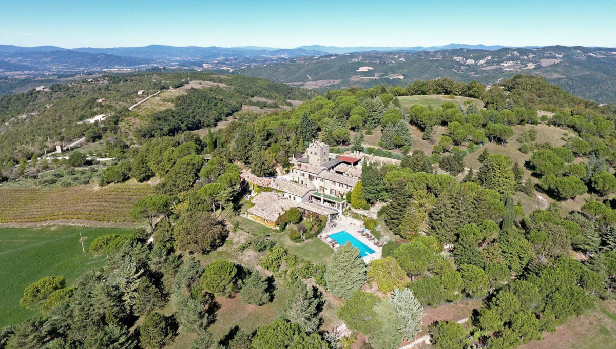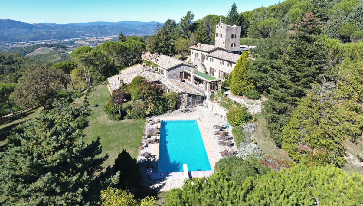 Dominante su un colle, in magnifica posizione a m.700 s.l.m., il Palazzo rievoca l’antico splendore di una costruzione fortificata risalente al periodo longobardo. La proprietà è interamente recintata, si estende per Ha 18 con bosco privato e sentieri che offrono agli ospiti la possibilità di fare passeggiate e raggiungere la sommità della collina da cui si può ammirare un panorama spettacolare e suggestivo.