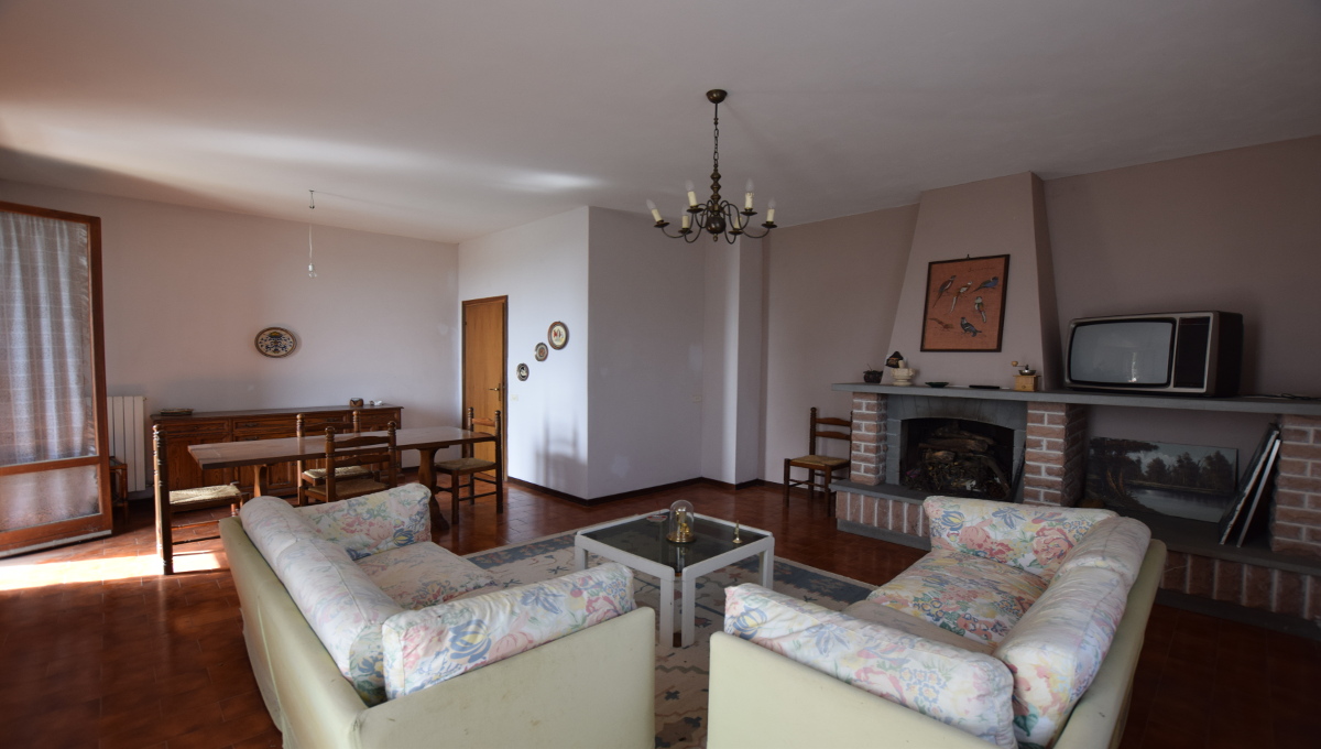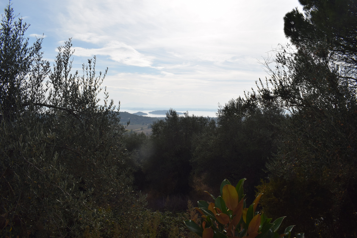Proprietà costituita da fabbricati e terreni in posizione collinare con ottima vista sul lago Trasimeno dal quale dista soli 3 km.