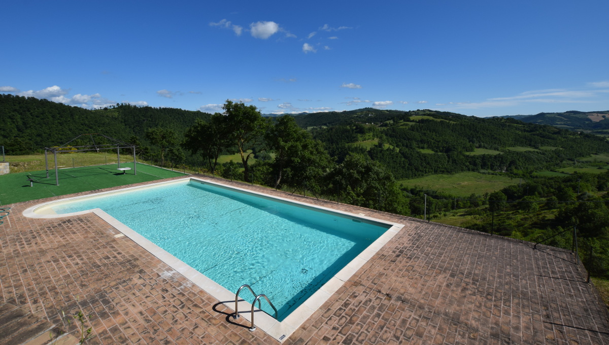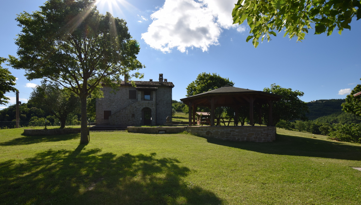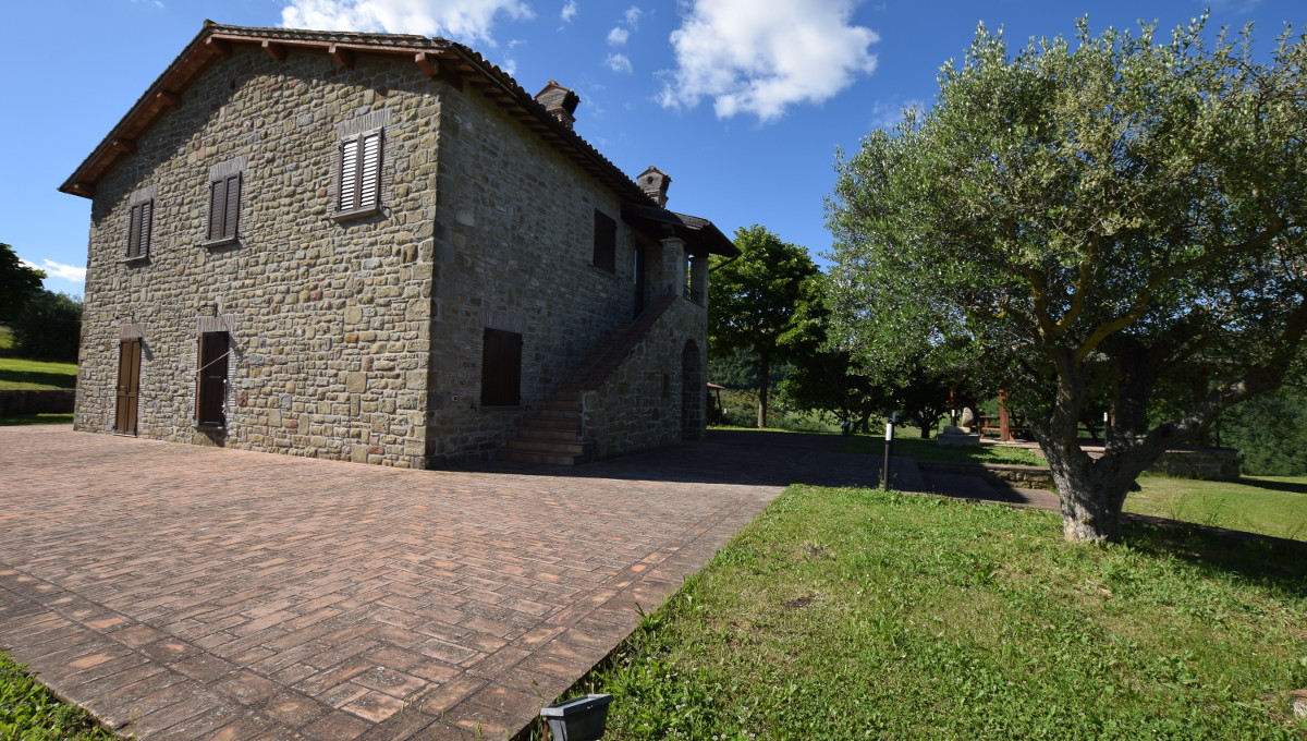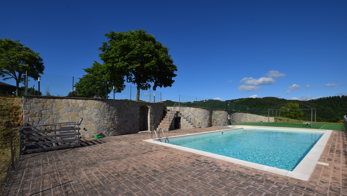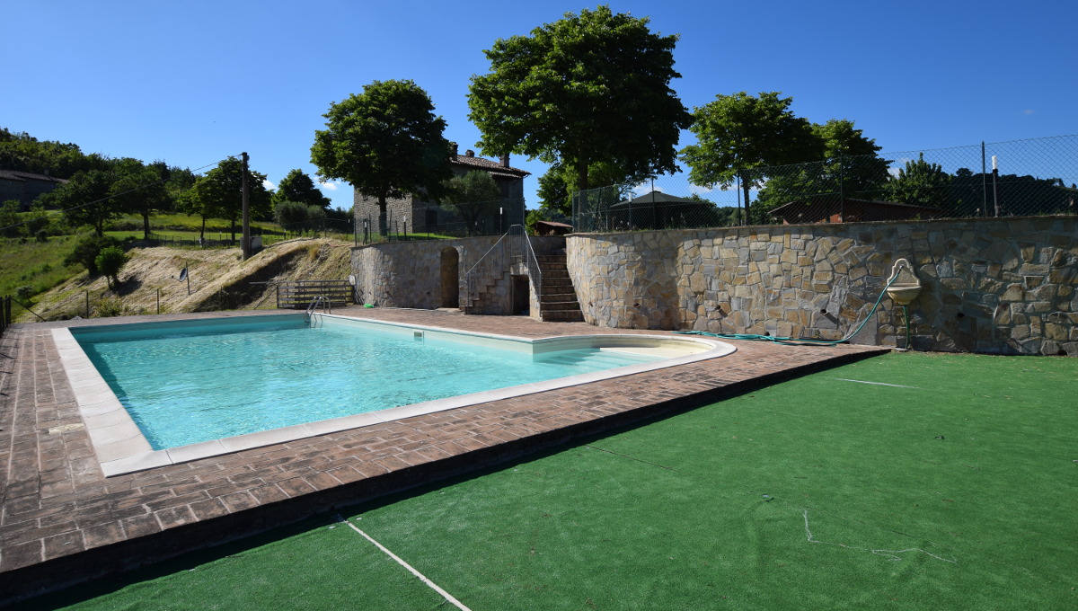 In Umbria a Gubbio nelle colline fronteggianti il futuro lago di Valfabbrica si trova questo bellissimo casale con piscina annessi e terreno, una fedele rappresentanza della tipologia dei casali umbri.