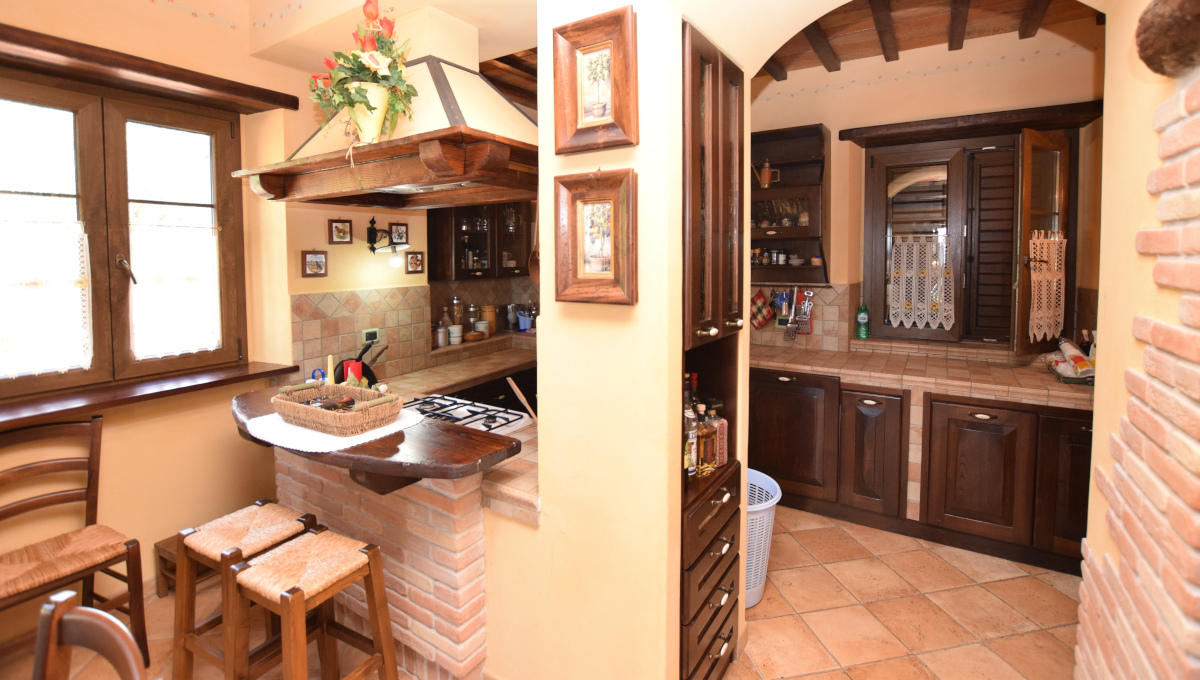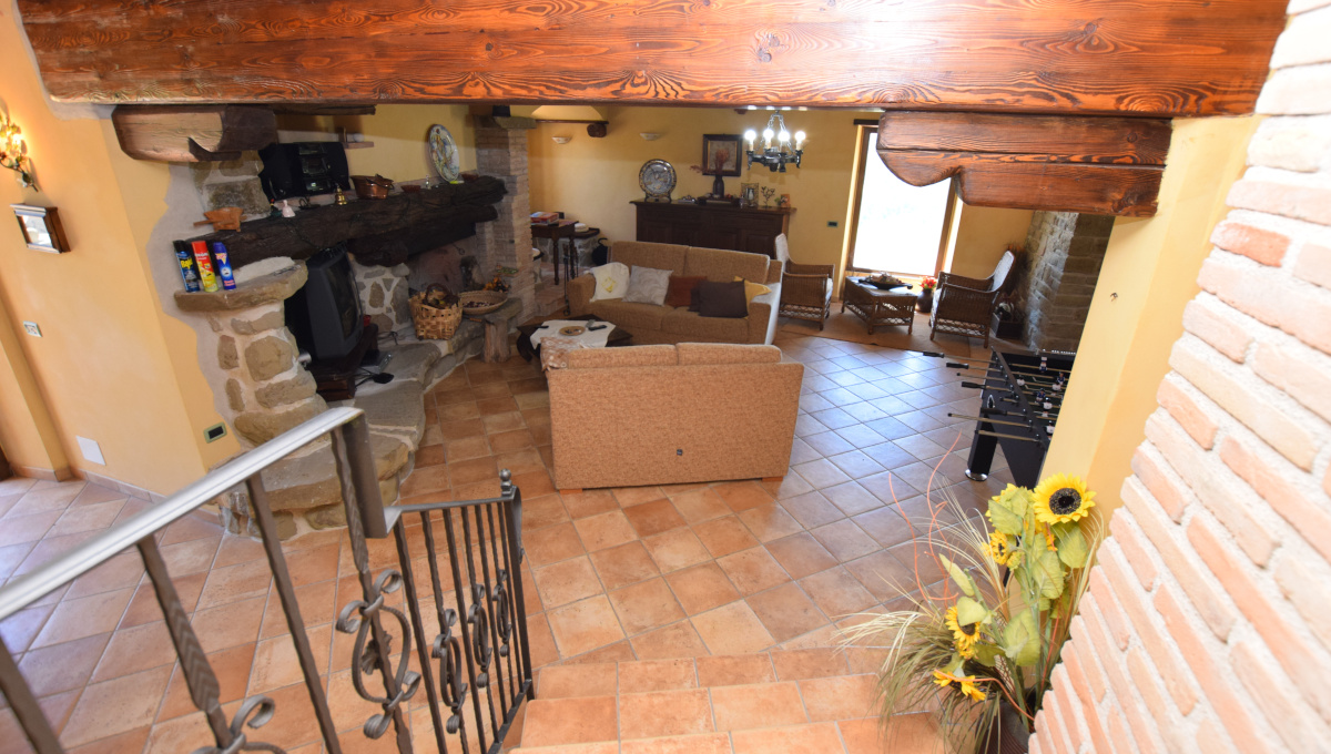 Questo piano, può essere raggiunto anche con la scala esterna in pietra e dal balcone si accede al tinello con cucina e gli altri locali.